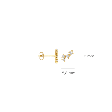 Fantasierijk en verfijnd zijn deze oorknoppen in 14kt geelgoudmet daarin zirkonia’s in pavé-zetting. De hoogte van de oorknoppen is 6 mm enze zijn fraai te combineren met collier 3191YZI en ring 1267YZI in hetzelfdeontwerp.