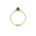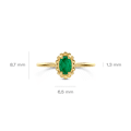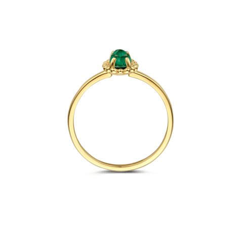 Deze elegante 14kt geelgouden ring is een echte eyecatcher met de groene malachiet en bergkristal in chaton-zetting omringd door een speelsbolletjesmotief. De doorsnede van de band is 1,3 mm. Mooi te combineren met andere sieraden met malachiet en bergkristal uit onze collectie.