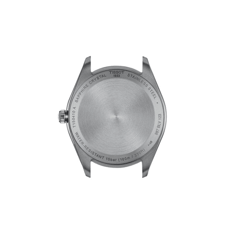 De Tissot PR 100 blijft zijn naam trouw: nauwkeurig ("P), robuust ("R") en waterbestendig tot een druk van 10 bar (100 m).