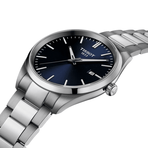 Dit Tissot PR 100 Quartz-model heeft een 40 mm roestvrijstalen kast. De blauwe wijzerplaat is goed beschermd onder een krasbestendig saffierglas. De roestvrijstalen armband is eenvoudig te vervangen dankzij het quick release systeem.
