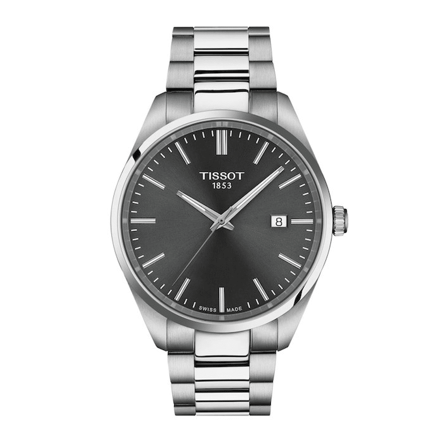De Tissot PR 100 blijft zijn naam trouw: nauwkeurig("P), robuust ("R") en waterbestendig tot een druk van 10 bar (100 m).