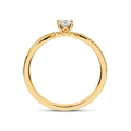 Naast de centersteen zijn er zijstenen, totaal 0.08ct, eveneens natuurlijke diamant. Diamantkwaliteit: G/Si. Dit alles komt perfect tot zijn recht in dit verfijnde ontwerp.